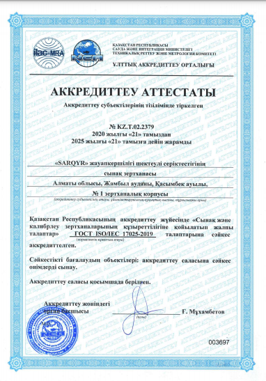 Испытательная строительная лаборатория ТОО «SARQYR» оснащена современным испытательным оборудованием и средствами измерения, внесенными в государственный реестр РК и проходящими ежегодную поверку и калибровку в системе стандартации. Специалисты испытательной строительной лаборатории проходят ежегодную аттестацию.